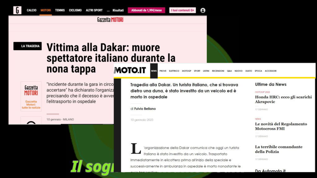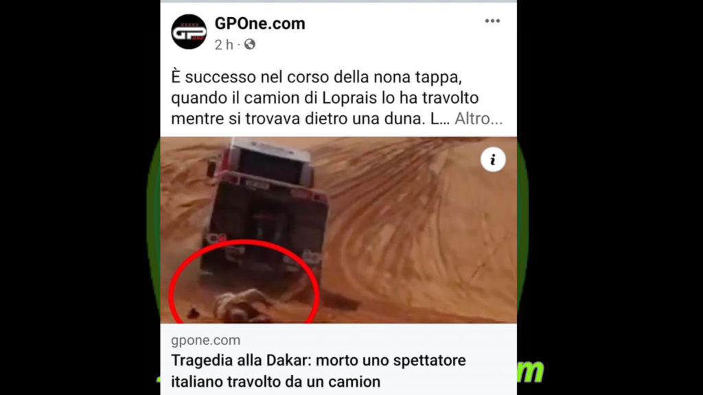 Se io leggo che durante una tappa della Dakar c’è stato un incidente mortale per uno spettatore è una notizia. Perfetto.