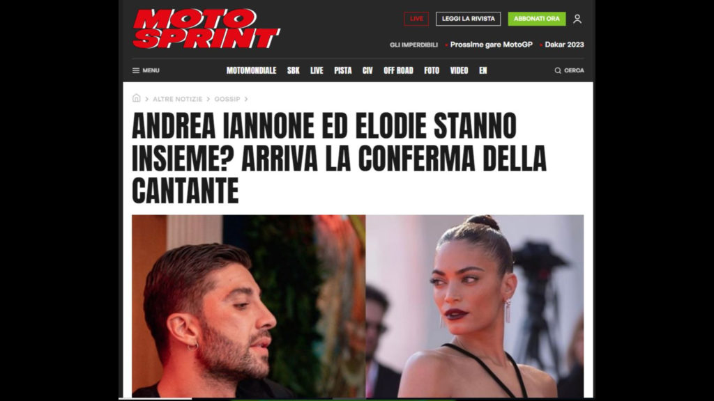 Uno dei pochi siti che parla di Iannone un modo tutto sommato corretto è Moto.it che lo accosta a situazioni motociclistiche. Per me sono superflue, non sono articoli che farei io, ma di certo non sono situazioni scorrette.