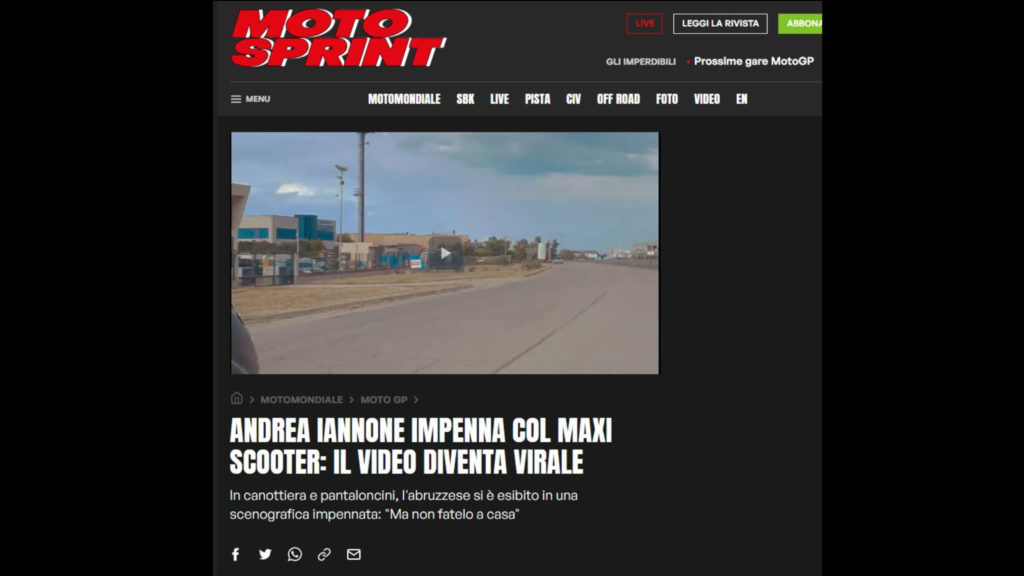 Quindi cosa succede. Che chi si occupa professionalmente e onestamente di motociclismo, lascia perdere Iannone e continua a scrivere di moto, gare, motori, piloti in attività che fanno cose di motociclismo, etc. Chi invece è disperato perché deve fare click, visualizzazioni e spiccioli a tutti i costi, deve mettere la bandierina su robe che erano di moto ma che possono essere spremute perchè sono mainstream, generaliste.