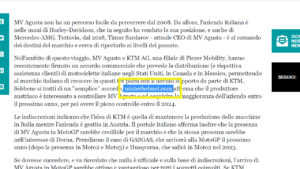 The purchase of the Ferrari of the motorcycles; this is MV, a very important move for KTM THAT DOES NOT HAVE A HIGH RANGE and even if it is bad from a sentimental point of view, since it is bad for an Italian brand to be bought like this, it is still the rescue of a brand that would otherwise agonize for another 10 years in the hands of a makeshift property.