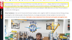 The Russians were pissed off not so much by the takeover by KTM because they actually wanted to sell MV and there were also Malaysian buyers ready on behalf of a fund, but by the fact that it emerged that MV is in trouble because they were not capable, which is undeniable. So in trouble that the Malaysians fled at the sight of the MV financial situation.