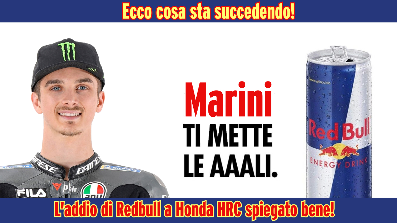 Non è vero che Redbull ha deciso di seguire Marquez in Gresini. Cioè è vero ma non è mai stata indecisa. Redbull lascia Honda per motivi di marketing e di messaggio e Marquez è solo una scusa. “Colpa” anche di Marini e Mir ma soprattutto di una diversa visione aziendale fatta di clausole, contratti etc. Come funziona Redbull rispetto ad altri brand di bibite energetici? Perché ha rescisso anticipatamente il contratto con Honda? Perché Honda non potrà avere altri sponsor di bibite energetiche per due anni?