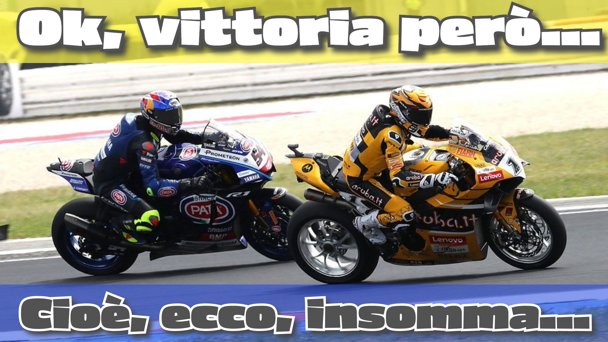 Razgatlioglu, ai ferri corti anche lui con Yamaha che non gli farà provare la BMW dopo averlo umiliato in occasione dei test in MotoGP, alla fine vince ma non vince, per aver passato il traguardo per primo ma solo dopo essere salito sul verde (la regola c’è e la rispettiamo ma l’ultimo giro sarebbe bello fosse zona franca da queste minchiate).