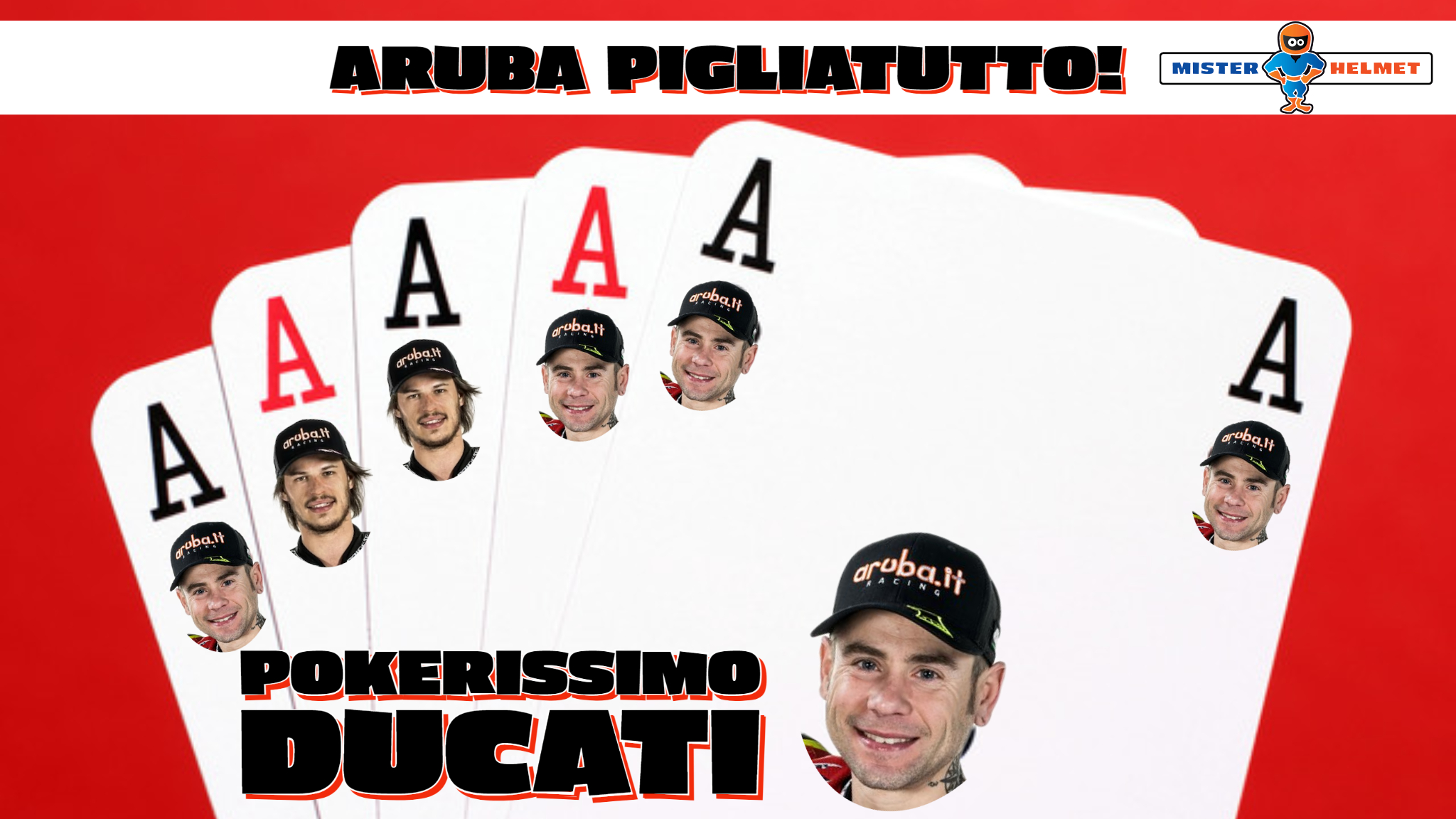 E’ il sogno di Aruba Racing che raccoglie, tutti insieme, come se si fossero incastrati in un distributore automatico capriccioso, tutti i frutti del mega lavoro fatto insieme a Ducati con cui completa uno dei binomi più felici di sempre. Difficilmente si sono visti risultati più logici di questo.